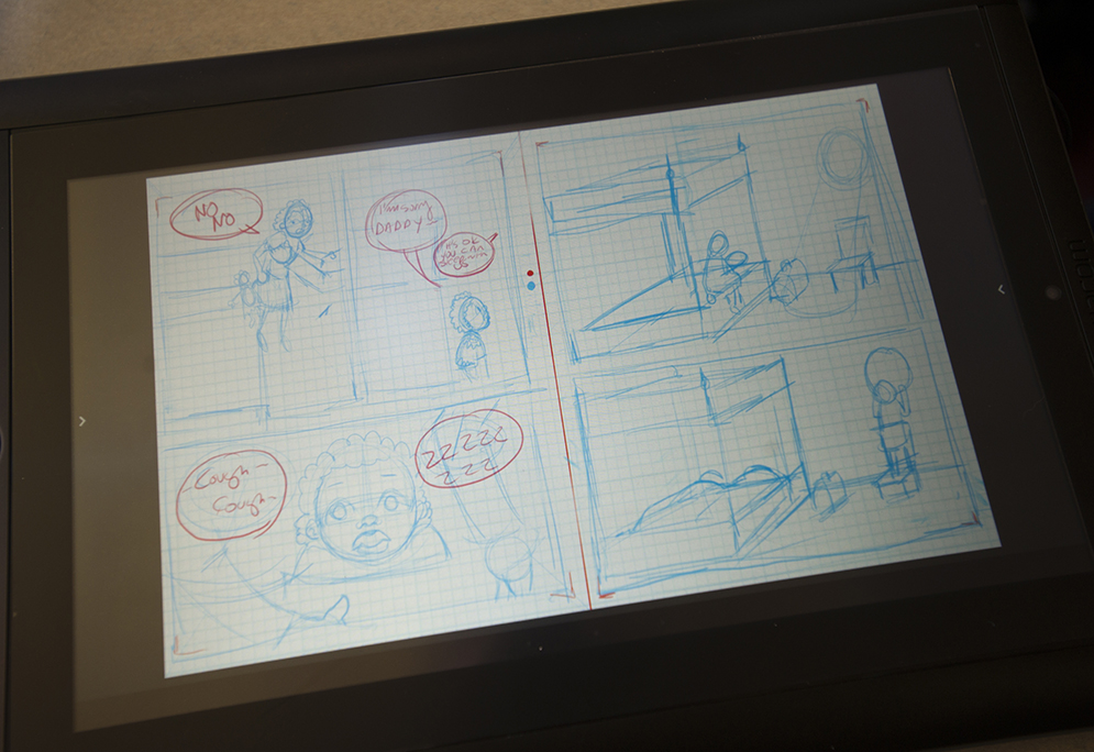 That got him to thinking about his first love, comics, and how their blend of pictures and words might fill that storytelling gap. He admired works like the Pulitzer-winning graphic novel Maus, wherein cartoonist Art Spiegelman recounts his father’s surviving the Holocaust, drawing Jews as mice and Nazis as cats. “I think comics can reach most people in a way” other media cannot, Gill says. “There was no explanation…like ‘cats don’t treat mice very well’….We all know how that is, and we get the imagery.”