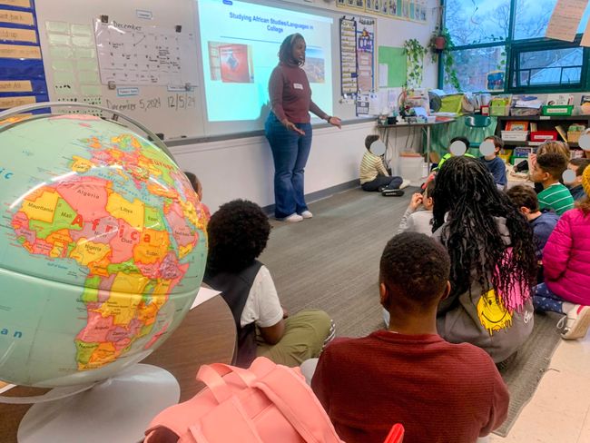 - 2nd-3rd graders in Memphis, TN, on “Introduction to Ghana and Akan Twi, on Zoom (1 hour).