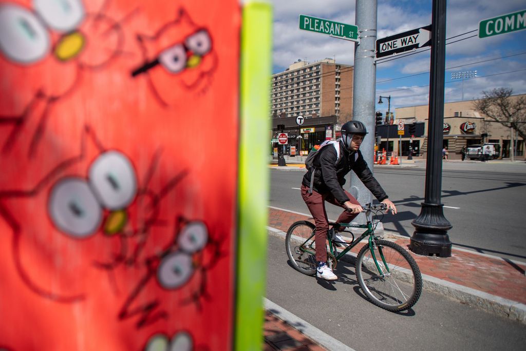 The number of people riding bicycles and scooters on and off campus has increased dramatically in recent years. Like drivers, cyclists and scooter operators are required to follow the rules of the road, which means stopping at all traffic lights and yielding to pedestrians in crosswalks. Adults are not legally required to wear helmets, but not wearing one is dangerous, as it puts the bike rider at risk. Reflectors and lights are required for nighttime riding. Riding a bike or scooter on the sidewalk is not allowed in Boston. Find more information about bicycling laws and safety here.