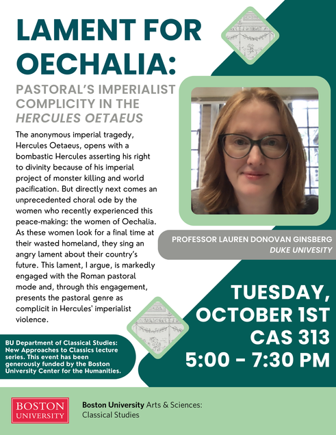 The New Approaches to Classics lecture series is generously funded by a grant from the Boston University Center for the Humanities.