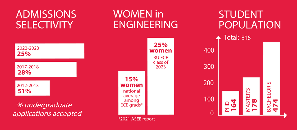 BU ECE creates engineers who shape the lives of future generations and make the world a better place. In addition to learning creative problem-solving skills essential for success, our Societal Engineers develop a set of complementary skills, which enable them to transfer their education in technology to the real world. BU ECE students graduate into dynamic careers that go beyond traditional ECE fields to include data science, robotics, cyber security, photonics, synthetic biology, smart health, and smart cities.