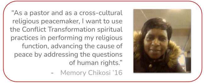 - Reflect critically on their own experience and social contexts in light of conflict transformation theories, theologies, ethics, and practices.