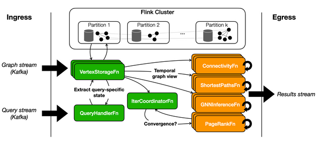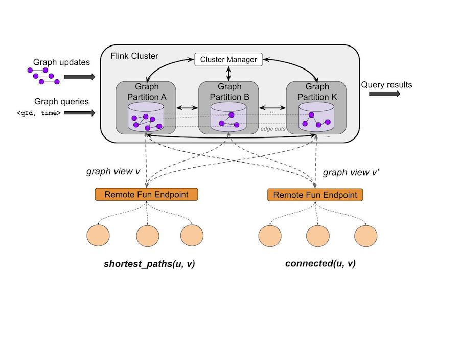 Streaming graph analytics is an emerging field of applications that aim to extract knowledge from evolving networks in a timely and efficient manner. Graph streams are (possibly unbounded) sequences of time stamped events that represent relationships between entities: user interactions in social networks, online financial transactions, product purchases, driver and user locations in ride-sharing services. In this project, we will focus on graph streams that can be used to model distributed systems, where workers are represented as nodes connected with edges that denote communication or dependencies. In this model, monitoring and performance analysis can be expressed as graph streaming queries. For example, if the dynamic topology of an OpenShift cluster fleet is modeled as a graph, a streaming query can continuously detect disconnected regions. We will design a prototype open-source streaming graph analytics system on top of Apache Flink Stateful Functions) https://flink.apache.org/stateful-functions.html and develop a temporal graph processing API for expressing continuous and ad-hoc queries on graph streams.