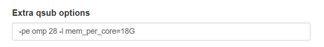 | Request a whole node with 28 cores and at least 256 GB of RAM. | -pe omp 28 -l mem_per_core=9G |