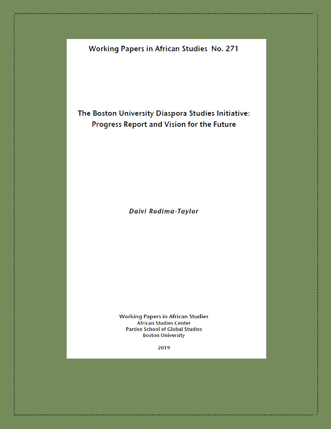The BU African Studies Working Paper 271, “The Boston University Diaspora Studies Initiative” (42 pp.) by Daivi Rodima-Taylor presents an overview of the contributions of the BU ASC Diaspora Studies Initiative to the academic as well as policy-oriented study of African diaspora matters, and suggests a vision for the future.