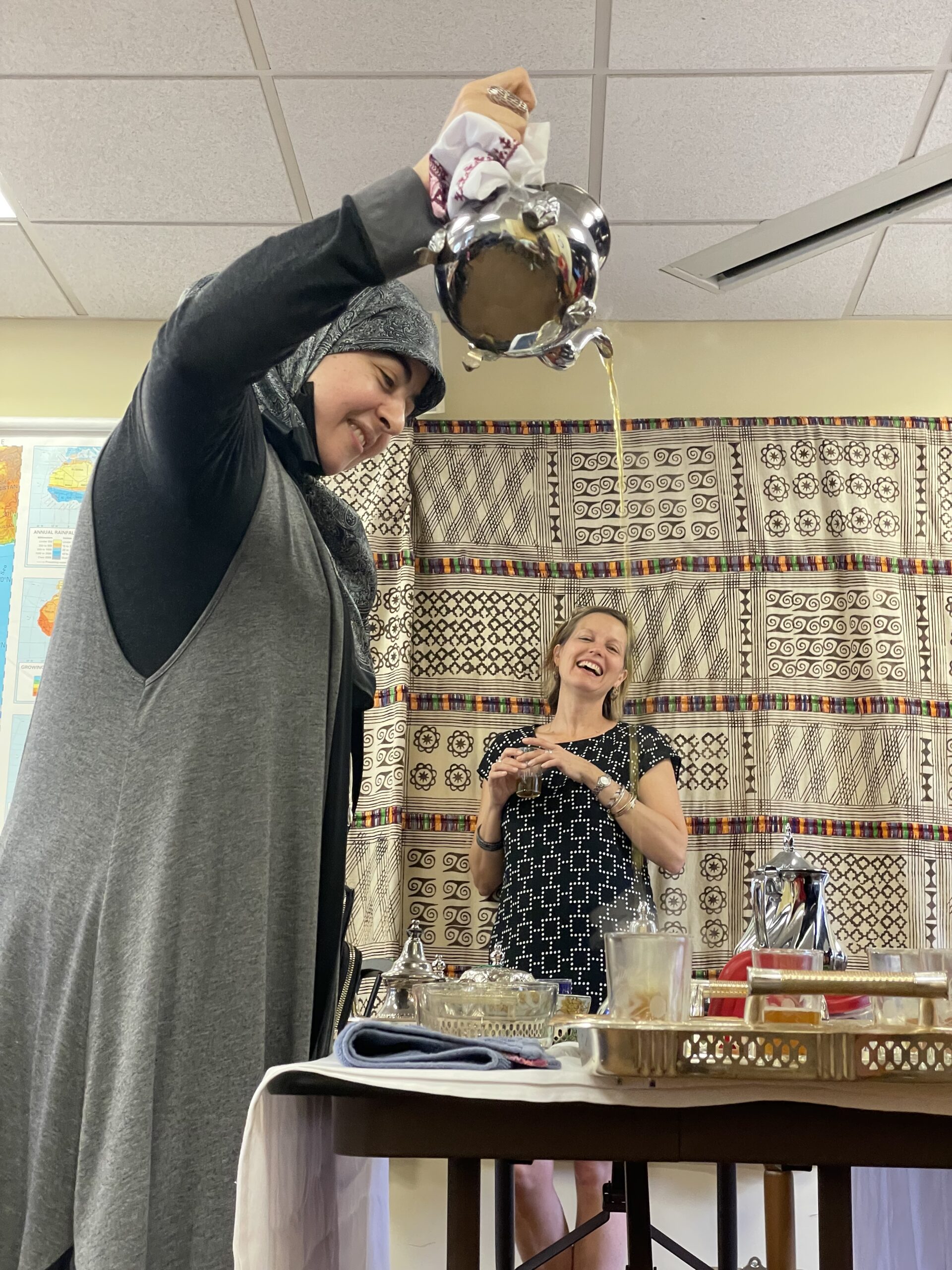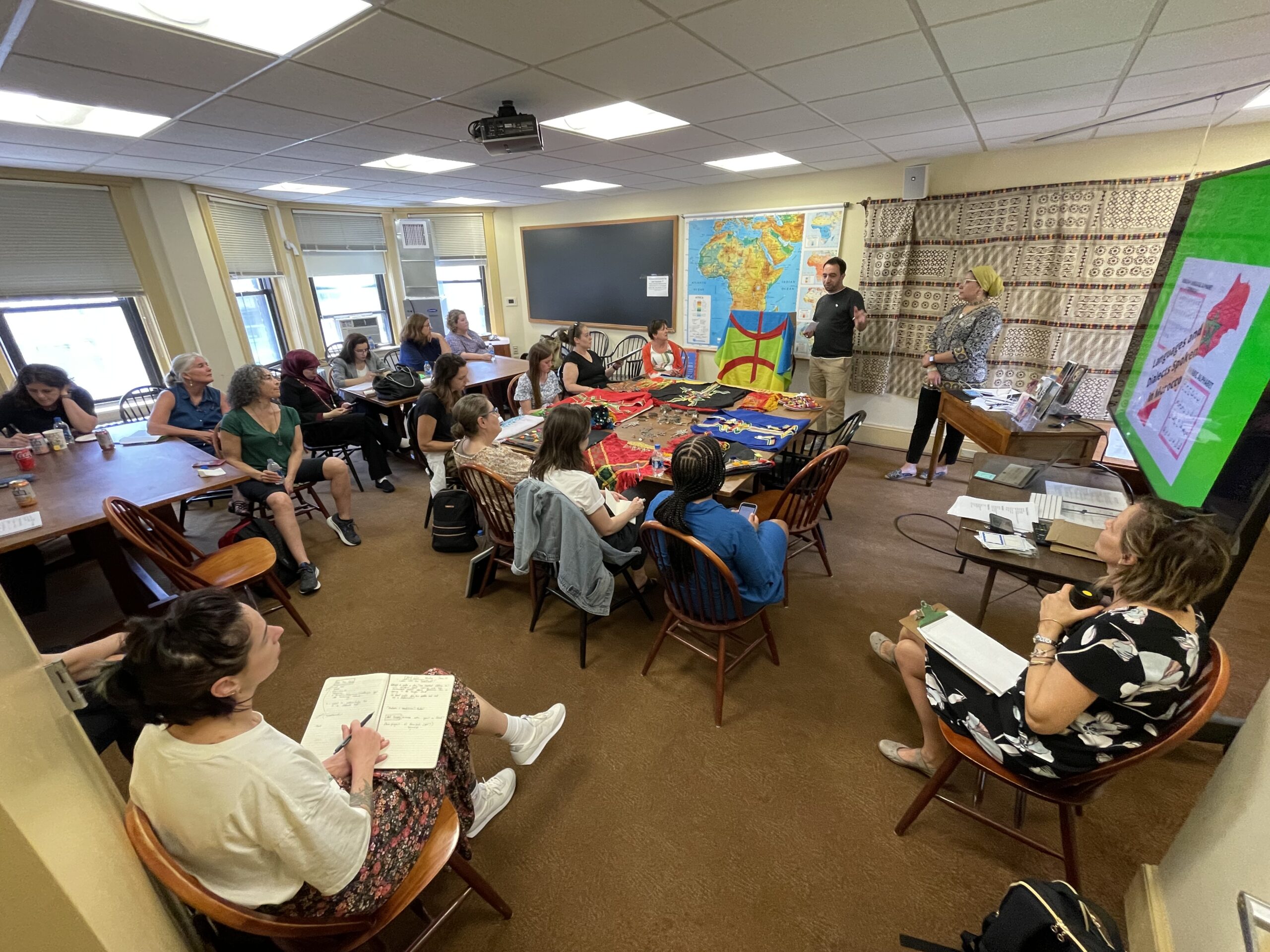 Other highlights include an introduction to basic Darija (Moroccan Arabic) and to the Moroccan Amazigh community led by Sanaa Abidar and Aziz Foulous of the Boston-based Amazigh Indigenous Cultural Community Organization (AICCO), as well as a discussion of Blackness and migration in Morocco led by recent BU anthropology PhD Dr. Gana Ndiaye. Teachers enjoyed a final send-off for their travels with a lesson on preparing Moroccan tea led by Majdouline, an 11-year old Moroccan American.