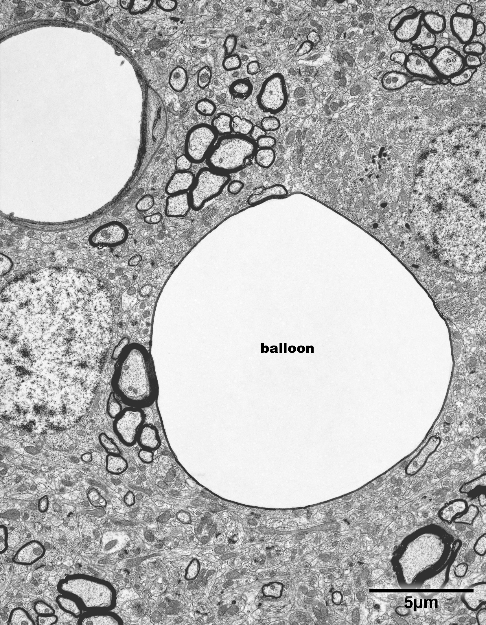 Fig. 15.1. A large myelin balloon in layer 4 of the primary visual cortex of 14 year old monkey. The unusually large myelin balloon, which is 12 microns in diameter is empty and appears to be fluid filled.
