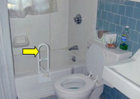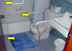 Sample Bathroom Safety Items Grab bars Adjustable toilet safety rails Rug with non-skid back Clamp on tub safety rail