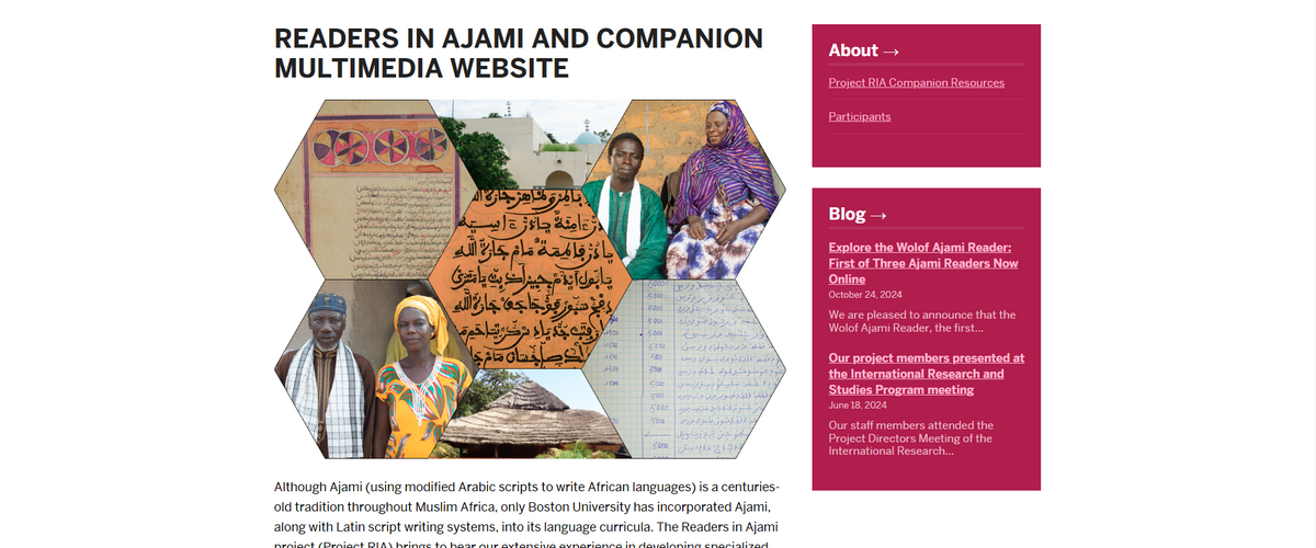 New Ajami Readers and Multimedia Tools: The Readers in Ajami project has developed new learning resources in African Ajami, including a multimedia interactive website and a 200-page Wolof Ajami Reader, which is the first in a planned series of three Ajami Readers. Here is more information about the Reader. The recent activities of our Ajami researchers include multiple research projects, contributing to academic journals and blog sites, and developing digital archival collections and multimedia instructional materials.
