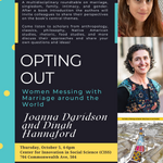 BU Anthropology Prof. Joanna Davidson with her co-editor, Dinah Hannaford, will give a brief introduction to their book, Opting Out: Women Messing with… More