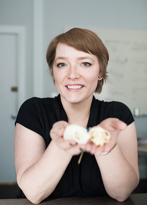 Eva Garrett is co-PI of the Sensory Morphology and Genomic Anthropology Lab at Boston University. She has a broad interest in the evolution of sensory systems in primates, particularly the sense of smell and pheromone detection. Her research integrates diverse fields including morphology, genomics, and paleontology to understand how humans and our closest relatives have evolved our unique sensory adaptations. She is working with her current postdoctoral scholar and UROP students to create digital models of extant and fossil primate crania to measure a bony correlate of the vomeronasal organ which provides an estimate of genes related to pheromone detection. Using statistical models, Dr. Garrett and colleagues have demonstrated that contrary to the hypothesis that primates significantly reduced their reliance on smell early in their evolutionary history, only a recent branch of the primate tree (apes and Old World monkeys) have reduced their reliance on pheromone detection in favor of vision.