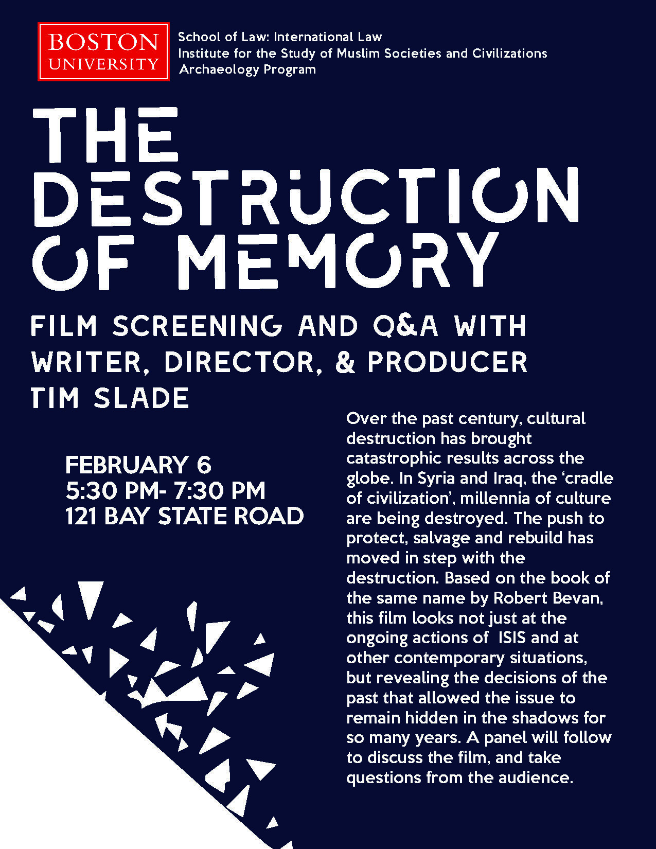 Archaeology co-sponsored cultural destruction film showing with Q & A By: Maria H. Sousa February 1, 2019 Share this:Click to email this to a friendClick to printShare on FacebookClick to share on TwitterClick to share on LinkedIn View all posts