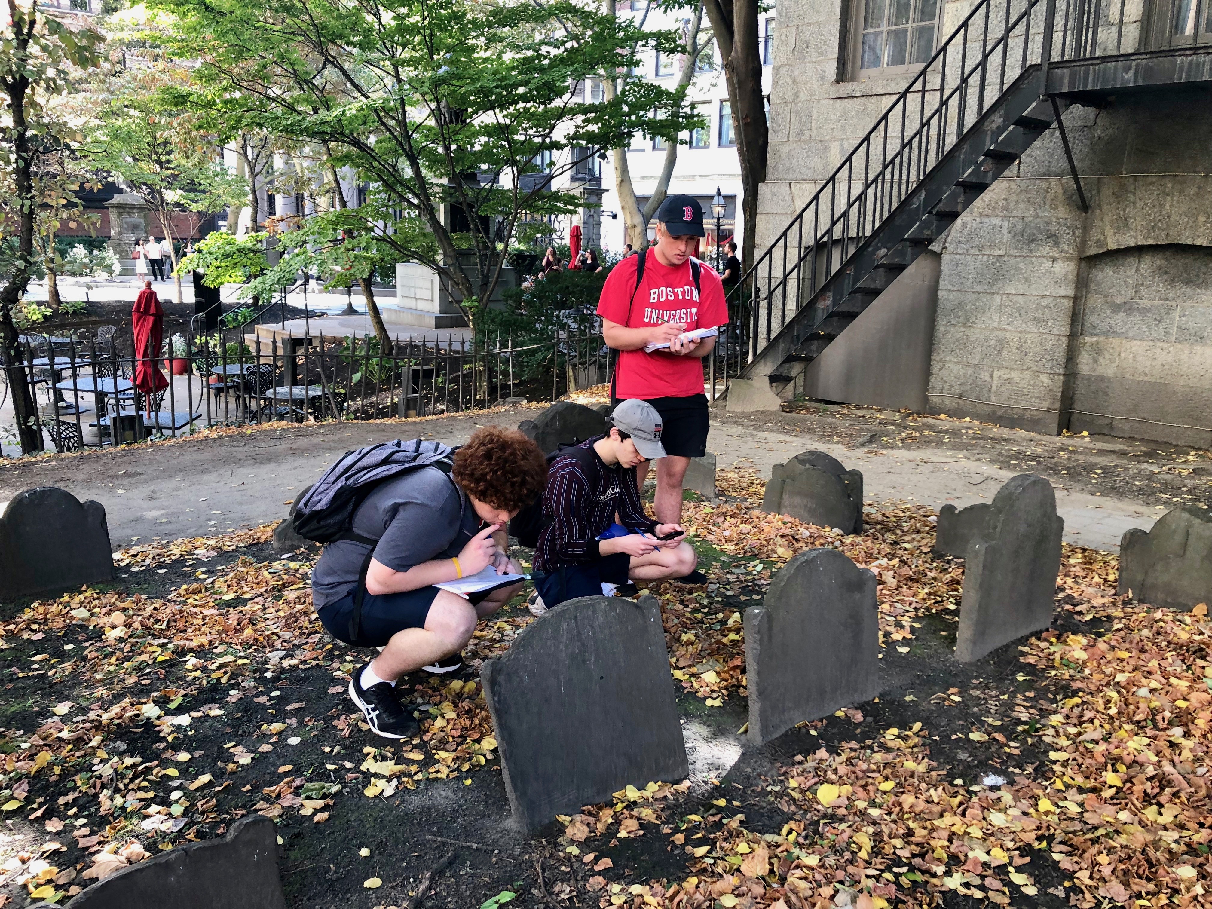 The CAS AR101 cemetery lab downtown at the Granary and King’s Chapel burying grounds. Click here for photos.