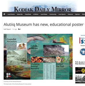 The Alutiiq Museum has produced our Ancestral Alutiiq Foods Project poster, and it was featured in the Kodiak Daily Mirror. Please see the attached images of the beautiful poster (by Alutiiq artist Lena Amason) and the newspaper article. Here is the Press Release.