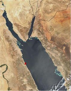 The Middle Kingdom harbor site of Mersa/Wadi Gawasis, Egypt is where ships were sent to the land of Punt, ca. 1200-1300 km south of this harbor somewhere in the southern Red Sea region. Well preserved evidence that has been excavated there includes texts carved on stelae which provide historical information about specific royal expeditions, the remains of ships and equipment used on these expeditions in rock-cut galleries, and imported materials (pottery, obsidian, and ebony) which point to where Punt was most likely located. Coastal geological studies also indicate that ca. 4,000 years ago the harbor was located in a sheltered embayment that extended much farther inland than the present shoreline.