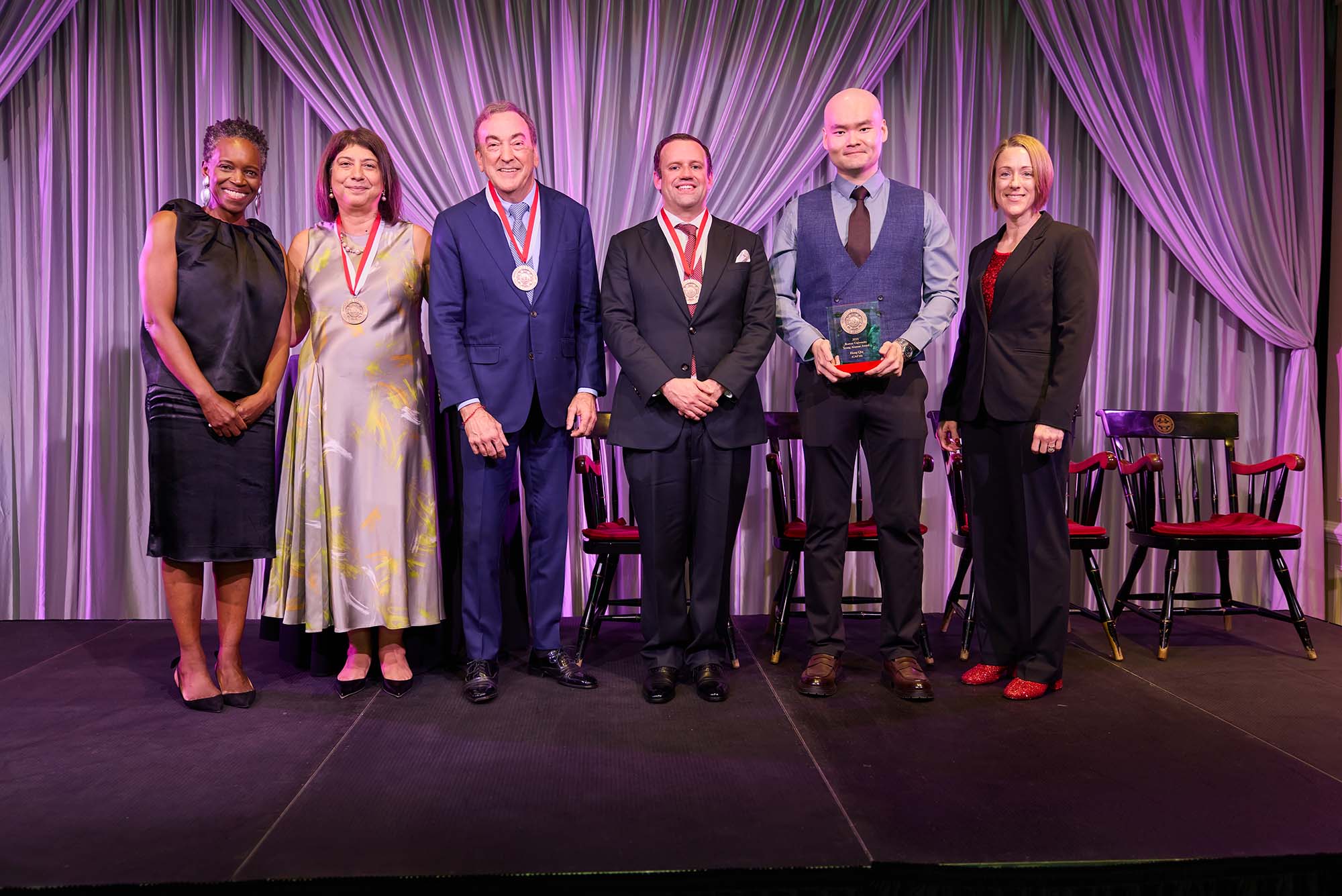 During the weekend, the BU Alumni Association presented its highest honor, the Distinguished Alumni Award, to five outstanding Terriers: Peter S. Del Vecho (CFA’80), an Academy Award–winning producer with Walt Disney Animation Studios; Rebeca Carrillo Martinez (LAW’92, Hon.’25), chief justice of the Texas Fourth Court of Appeals, the nation’s first appellate court to hold an all-woman bench; Reshma Kewalramani (CAS’98, CAMED’98), president and chief executive officer of Vertex Pharmaceuticals, a Fortune 500 biotechnology company; Russ Wilcox (CAS’13), CEO of ArtifexAI, which applies artificial intelligence and natural language processing technologies to the field of urban planning; and Clarence B. Jones (LAW’59), a civil rights leader, lawyer, and close confidante of Martin Luther King, Jr. (GRS’55, Hon.’59), who drafted King’s iconic “I Have a Dream” speech. The 2025 Young Alumni Award was presented to Hang Qin (CAS’16), a serial entrepreneur and creator of the BetterWorld Global Youth Model United Nations Conference.