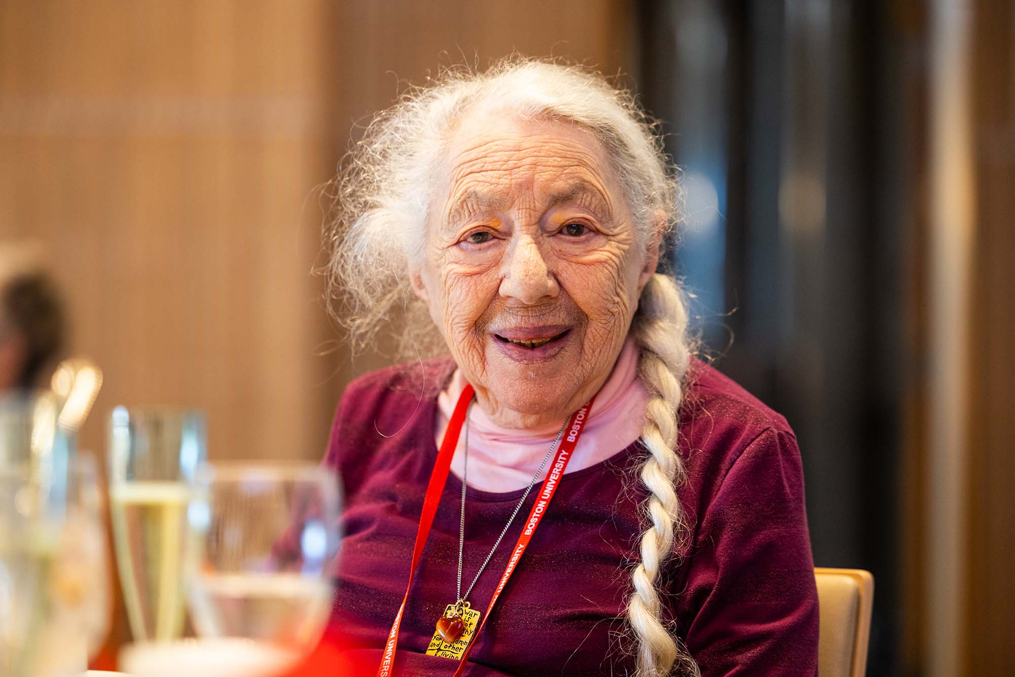 Reva Barez Schwartz (CAS’52) at the brunch for Golden Terriers at the Howard Thurman Center for Common Ground. Photo by Jake Belcher