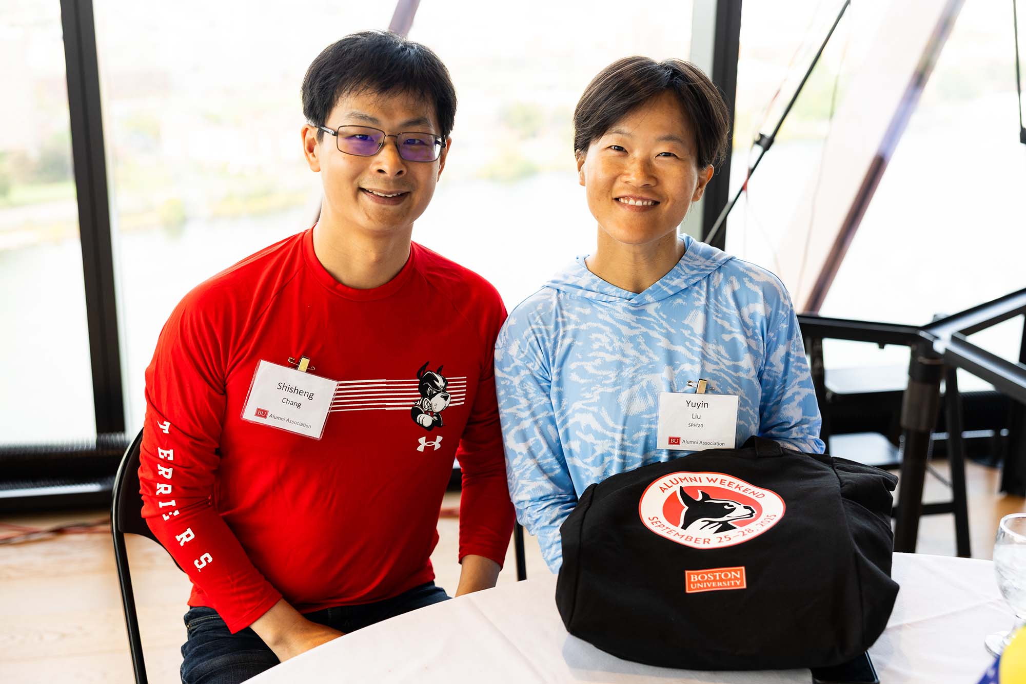Shisheng Chang (left) and Yuyin Liu (GRS’20) enjoy the celebration for international alumni. Photo by Jake Belcher