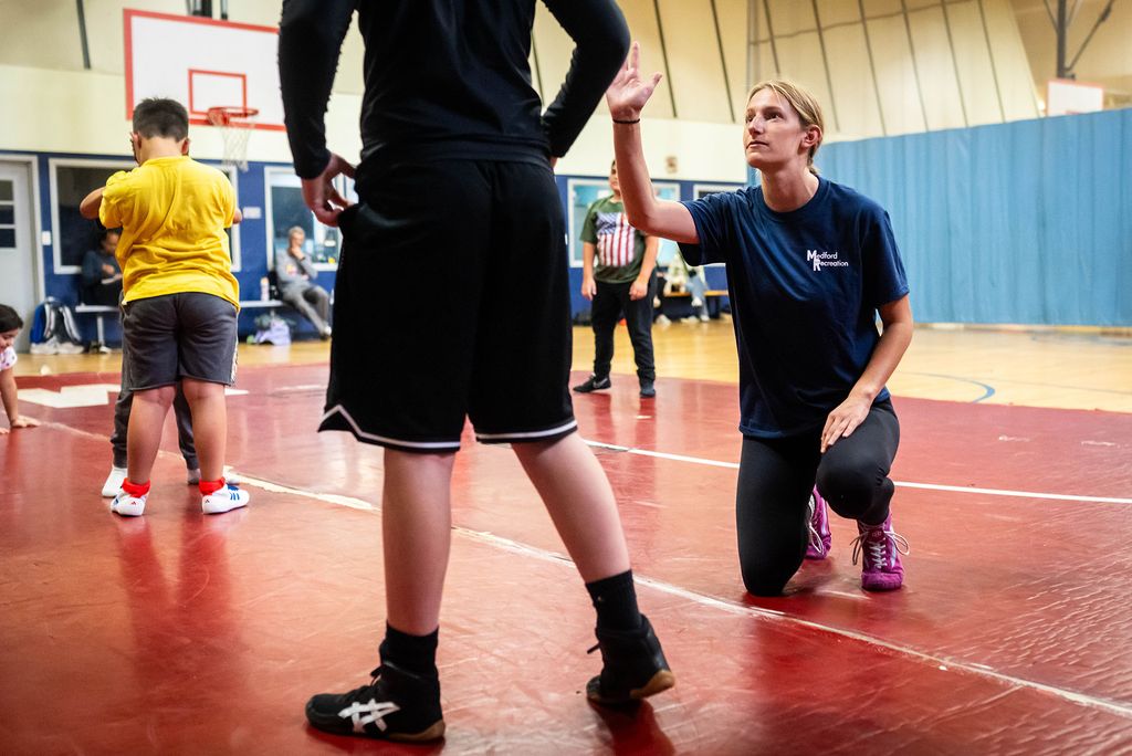 In high school, Bryson led a girls’ wrestling workshop in order to achieve her Girl Scout Gold Award, the highest and most difficult award a Girl Scout can earn. Seeking to address the lack of girls participating in the sport, she hoped that by encouraging younger girls to engage, she might lessen the sport’s prevalent gender gap. She continues coaching at youth camps and clinics, working part-time as a coach for a kids’ wrestling team in Medford through the city’s recreation department.