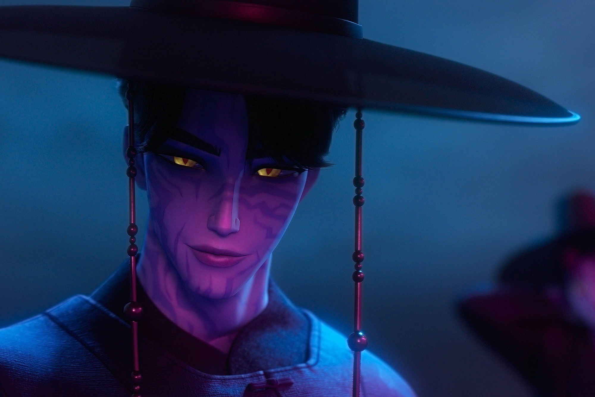 Huntrix’s enemies, underworld-dwelling demons who rise up in the form of a rival K-pop boy band named Saja Boys, also follow traditional folklore storylines. Their name, saja, is a shortened version of the Korean word for a reaper who guides souls to the afterlife. Indeed, in the movie, Huntrix and the Saja Boys are battling it out for the souls of their (rabid) fans. The Saja Boys’ final costumes, memorable wide-brimmed hats and black cloaks, are also reminiscent of traditional grim reaper iconography, Yang says.