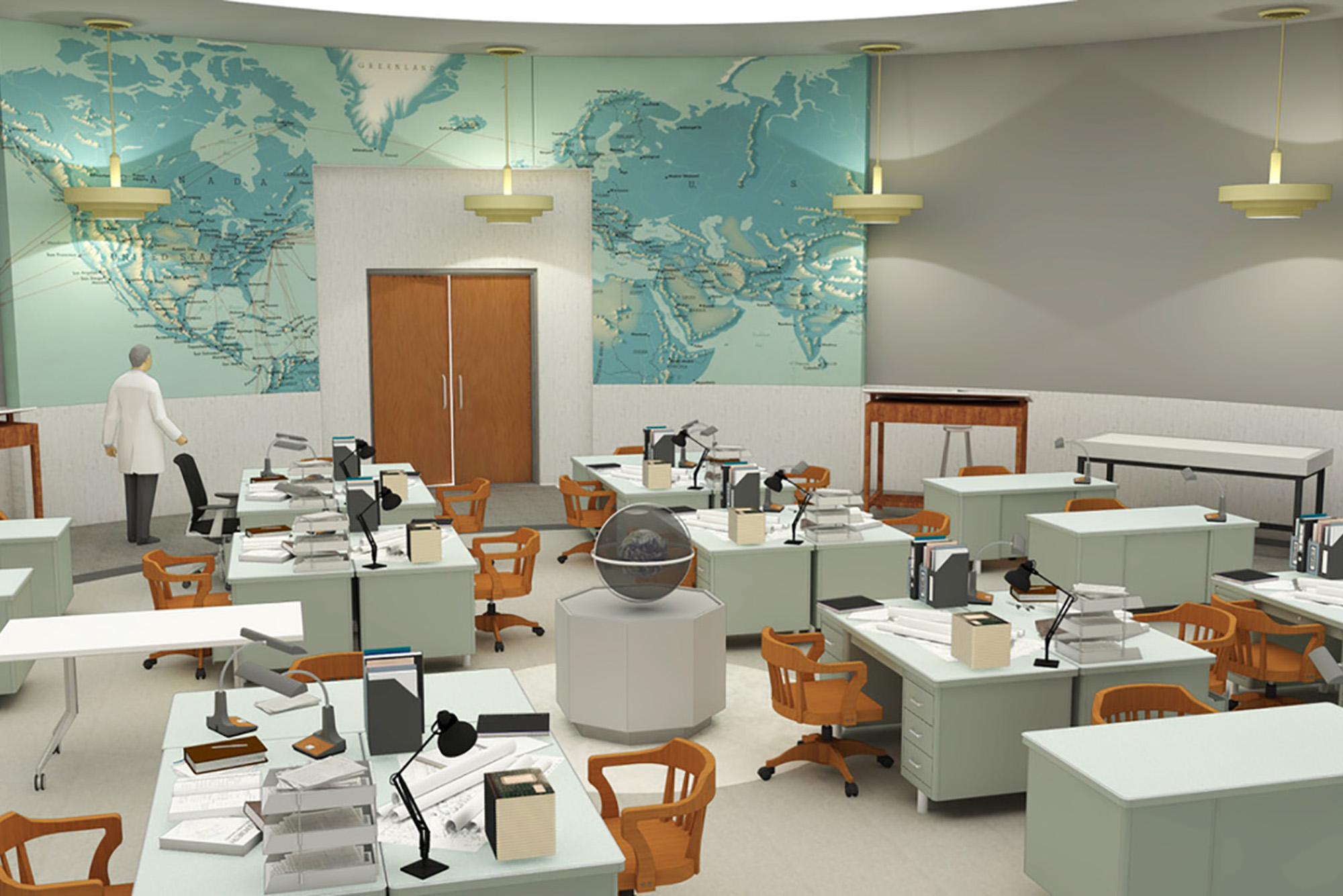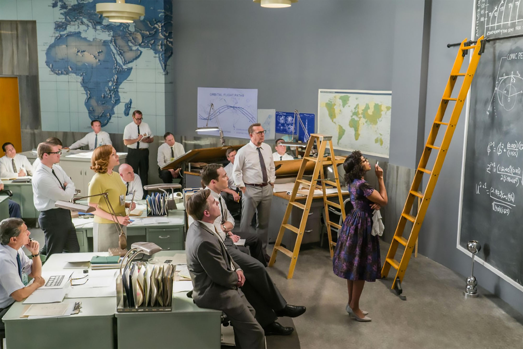 During location scouting on the campus of Morehouse College in Atlanta, Ga., where the film was to be shot, Thomas came across a building he immediately felt was right for the Space Task Group. “I went inside and discovered a huge, circular room, and I said, ‘This is it!’ I decided not to treat the space where she’s working as a realistic space, but to treat it as part of Katherine’s journey through space. She’s traveling down this long corridor, and she ends up going into a room that is essentially a big, huge globe. She’s on her own journey, just like the astronauts…. When she walks into that space, you want her to go, ‘Wow!’ There should be a moment of astonishment, because this is a world she’s never seen before.”