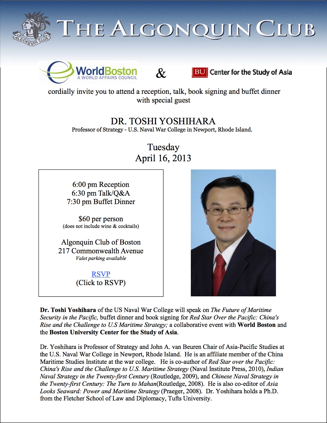 EVENT: An evening with DR. TOSHI YOSHIHARA, Professor of Strategy at the U.S. Naval War College (4/16/2013)