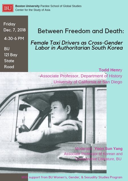 Between Freedom and Death: Female Taxi Drivers as Cross-Gender Labor in Authoritarian South Korea (Dec. 7)