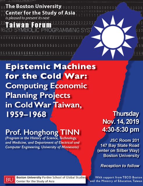 BUCSA Taiwan Forum: Epistemic Machines for the Cold War: Computing Economic Planning Projects in Cold War Taiwan, 1959-1968 (Nov. 14, 2019)