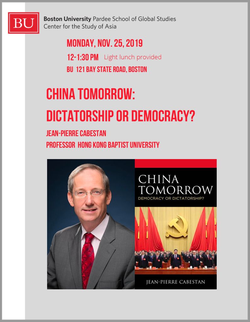 Jean-Pierre Cabestan lecture, “China Tomorrow: Dictatorship or Democracy?” (Nov. 25, 2019)