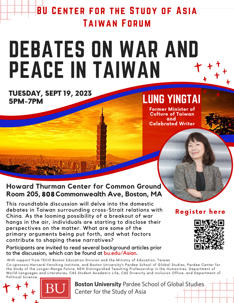 LUNG Yingtai roundtable discussion, “Debates on War and Peace in Taiwan” (BUCSA Taiwan Forum, Tues Sept. 19, 2023)