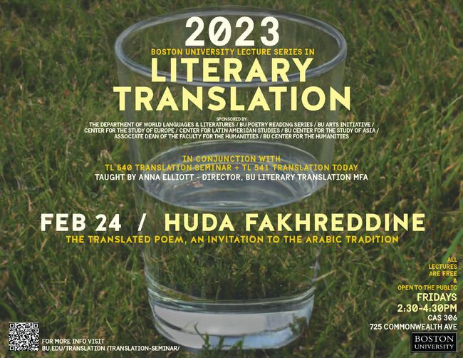 Huda Fakhreddine, The Translated Poem, An Invitation to the Arabic Tradition. BU Literary Translation Series (Feb. 24, 2023)