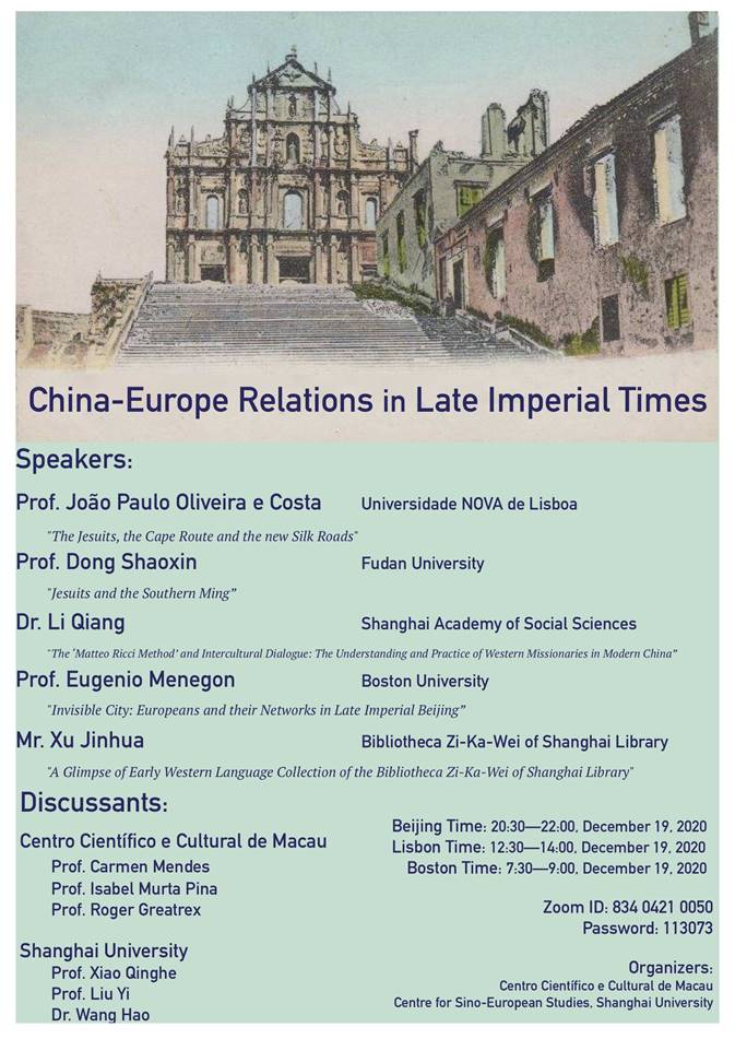 China-Europe Relations in Late Imperial Times: An International Workshop (Dec. 19, 2020)