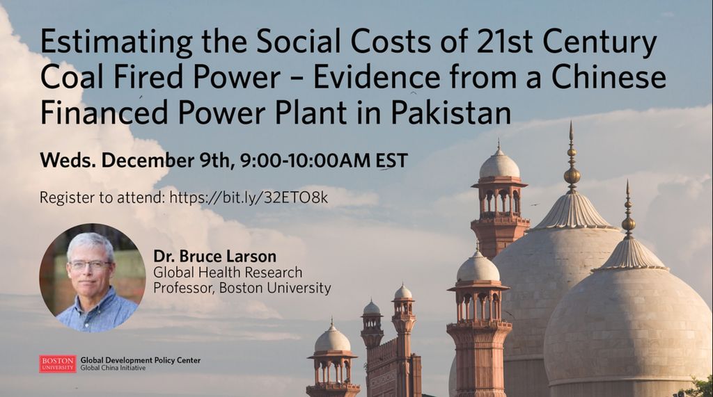 GDPC Global China Initiative: Estimating the Social Costs of 21st Century Coal Fired Power – Evidence from a Chinese Financed Power Plant in Pakistan, with Dr. Bruce Larson (Dec. 9, 2020)