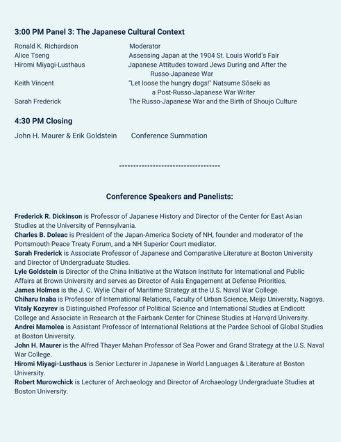 Panel 2: How Wars End: The Treaty of Portsmouth