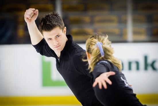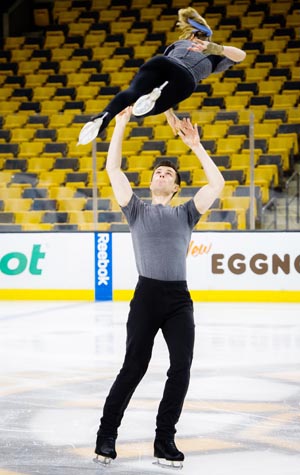 On a recent weekday morning, Jimmy Morgan donned a pair of skates and glided out to TD Garden’s center ice to meet his figure skating partner, Alex Shaughnessy. Staring intently at the bench where the Boston Bruins usually sit, Morgan (COM’14) took her hand and they struck a dramatic pose as the arena filled with the sound of Angel Gregorio Villoldo’s sweeping tango El Choclo.
