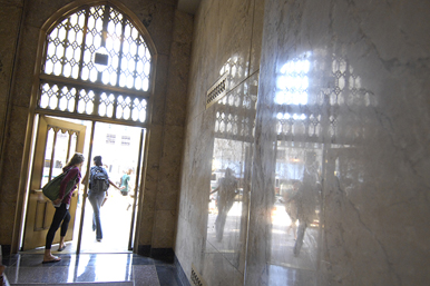 Students slice through FitRec’s Olympic-size lap pool. Photo by Kelly Davidson