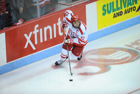Cocaptain Garrett Noonan (MET’15) (3 goals, 8 assists) is tied for second among Hockey East defensemen, with 11 points.
