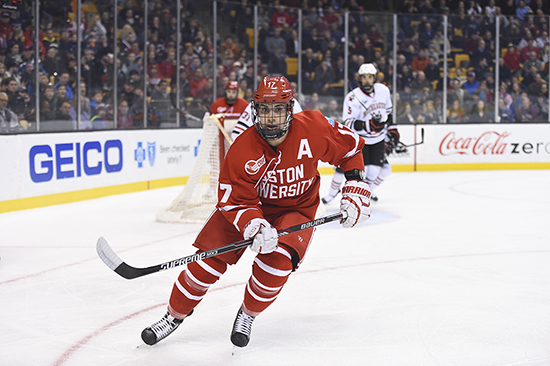 “Eichel’s been a phenomenal player the whole year,” says captain Matt Grzelcyk (COM’16). “He can create his own offense, make something out of nothing—he can just do it all. Even sometimes when he might seem rushed or trapped, he just knows how to handle the situation. Every time he touches the puck, something good seems to happen.”