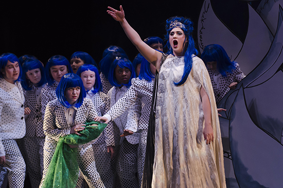 Erika Anderson (CFA’16) (fourth from left), with members of the Voices Boston children’s chorus, and Ruby White (CFA’16) (right) in CFA’s spring opera, A Midsummer Night’s Dream.