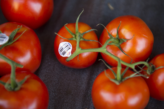 Science teacher Stephen Ferguson (above) was next in line. He picked out a small white onion, three pounds of tomatoes, four cucumbers, and a big bag of grapes, and Chorluyan packed everything into plastic bags.