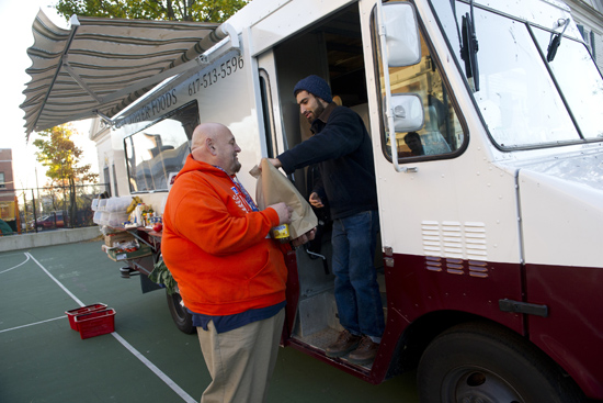 Sevan Chorluyan (SAR’11, SPH’12) and seven School of Public Health classmates run the grocery truck Bell Tower Foods. Photos by Vernon Doucette