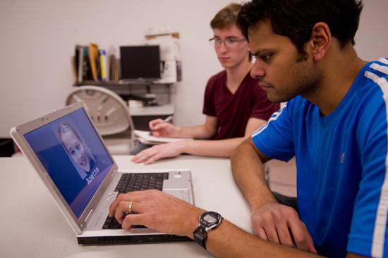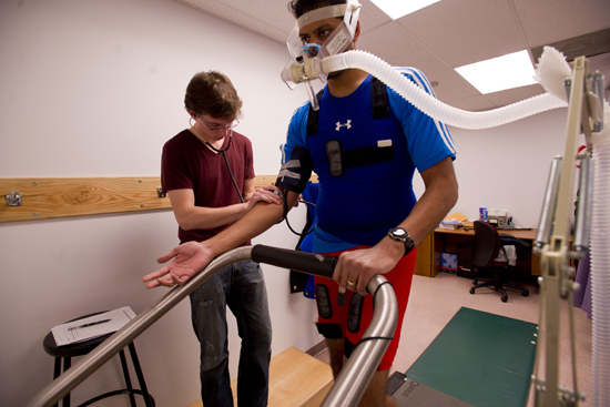 Andrew Whiteman (CAS’12) tests Kishan Gupta on the treadmill for research into fitness and memory.