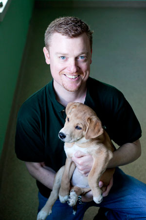 A dog lover all his life, Oakes (COM’93, CAS’93) now works full-time as a pet adoption counselor at Northeast Animal Shelter in Salem, Mass.