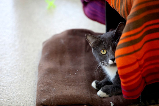 With its cheerful primary color scheme and plush indoor cat playground, the private nonprofit shelter could easily be mistaken for a day-care center. At the edge of a room arranged with consultation tables and literature about pet owning and pet health is a set of Dog Visiting Rooms with shuttered windows like children’s playhouses. “I’d heard of people who love going to work every day, but I didn’t think that was possible,” says Oakes as he offers a tour of the shelter, which moved to its present location two and a half years ago. “But that’s how I feel.”