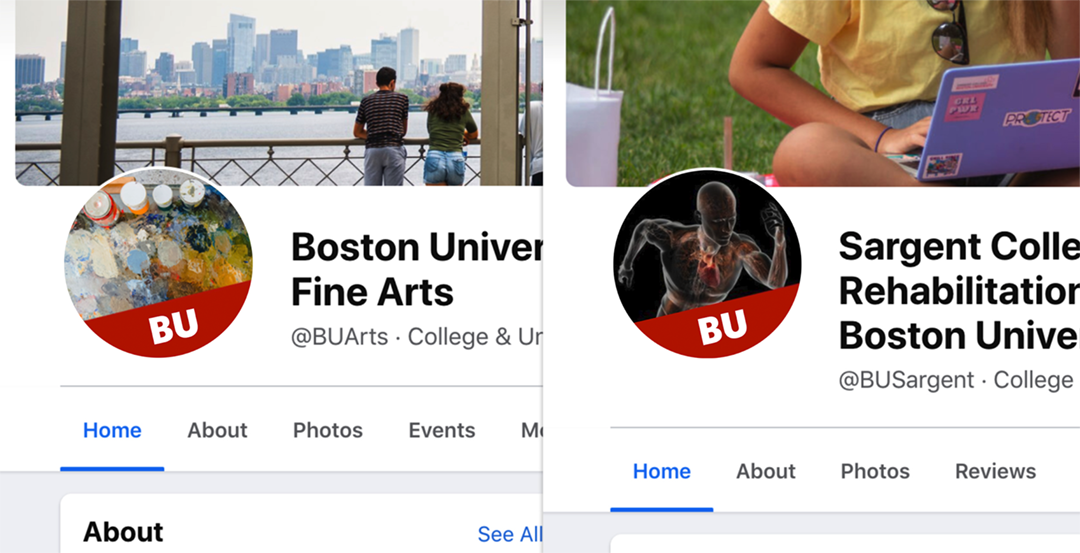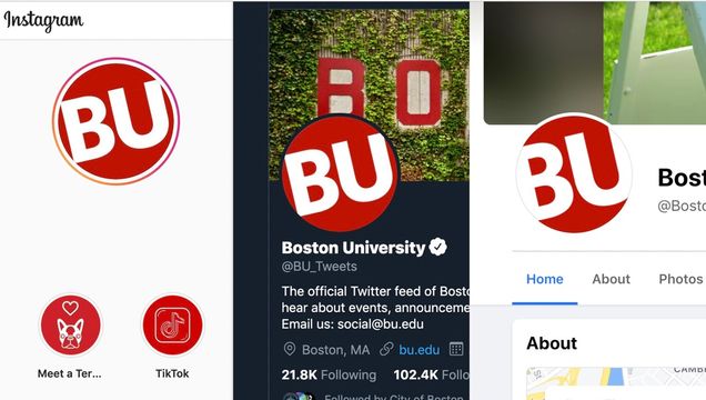 - “Boston University” must be spelled out in the social media title, along with the full name of your school, college, or entity. “Boston U” or “Boston Univ” is acceptable in tight spaces, but “BU” is not permitted (except as an “@” handle).