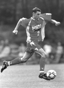 Although the injury bug is biting again this year, Assistant Coach Andy Fleming is hoping that it remains a nibble and not a big chomp. "We have some nagging injuries," he says. "Key players have been able to play, but not at 100 percent. Even with the injuries, the talent is still out there. Realistically, we could win 15 or 16 games." BU's record at present is 4-2, which is a little better than where it stood at this point a year ago (3-2-1). The Terriers were underdogs heading into the 2000 season also, and then goalkeeper Matt Smith (CAS'03), the team's top freshman in 1999, suffered a broken bone in his right hand in a drill before preseason even began, missing the first 10 games. Joachim Kaland (MET'02), a Second Team America East All-Conference selection in 1999, tore the anterior cruciate ligament in his right knee during the seventh game, against Creighton. Freshmen Mark Richardson (CGS'02), Michael Feely (CGS'02), and Alan McNamara (CGS'02) were all sidelined at different points with nagging injuries. The bright side of last year's adversity is the fact that underclassmen benefited from being enlisted into game action earlier than they would have been. "The experience definitely paid off," says Fleming, "but I don't want to be in the same boat in October, saying the exact same thing. We'll be sounding like a broken record. We have a high standard because of what the program has done in the past. From top to bottom we're more talented than anyone else in the conference, and there's no reason why we shouldn't get into the NAC tournament and win the conference." This year's campaign began with shutout victories over Lehigh, 1-0, and Army, 4-0. BU then traveled to UConn (20-3-2 in 2000) for a matchup with last year's national champions. An upset victory would have been something to build on. Unfortunately, the Terriers lost, 1-0, but in a game that had BU playing aggressively and UConn back on its heels. "We played really well, but we took a step backward," says Fleming. Next, a 2-1 double-overtime loss to UMass-Amherst evened their record. However, the Terriers managed to overcome their scoring woes when they defeated George Mason, 6-2, and Quinnipiac, 4-2, on September 21 and 23. "We came together offensively," says Roberts. "It was an impressive weekend."