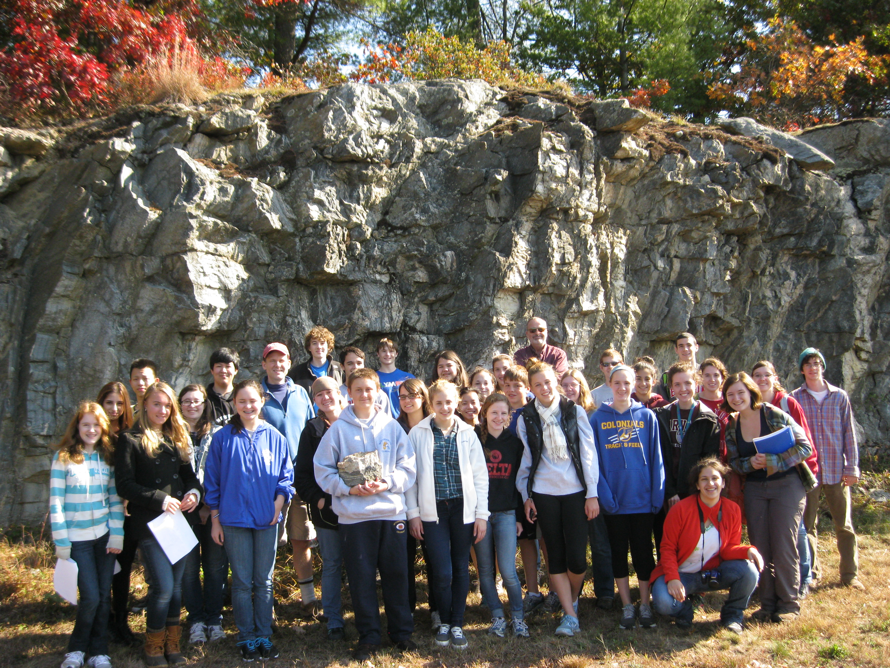 This past fall’s RoBOT program featured high school students from Acton-Boxborough Regional High School. During a Saturday rock-collecting excursion in October, the high schoolers and BU students spent part of the day in the Acton-Boxborough area sampling rocks. Then, the BU students continued on, collecting samples at sites in New Hampshire. The eighth and final site they visited was the New Hampshire home of Gina Sapiro, dean of Arts & Sciences, and her husband Graham Wilson, chair of Political Science.