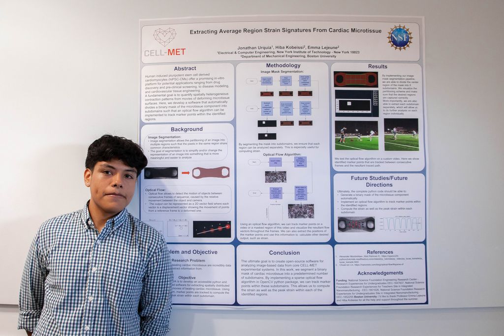 Extracting Average Region Strain Signatures from Cardiac Microtissue: As a first time REU, Jonathan wasn’t sure what to expect. Over his time in the Lejeune Lab working with his mentor, Hiba Kobiessi, he was relieved to find that – in addition to being quite technical – his project gave him the “sense to be creative and come up with solutions to problems that don’t exist yet.”
