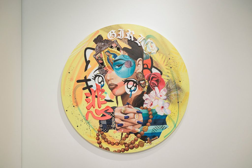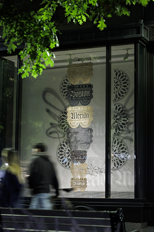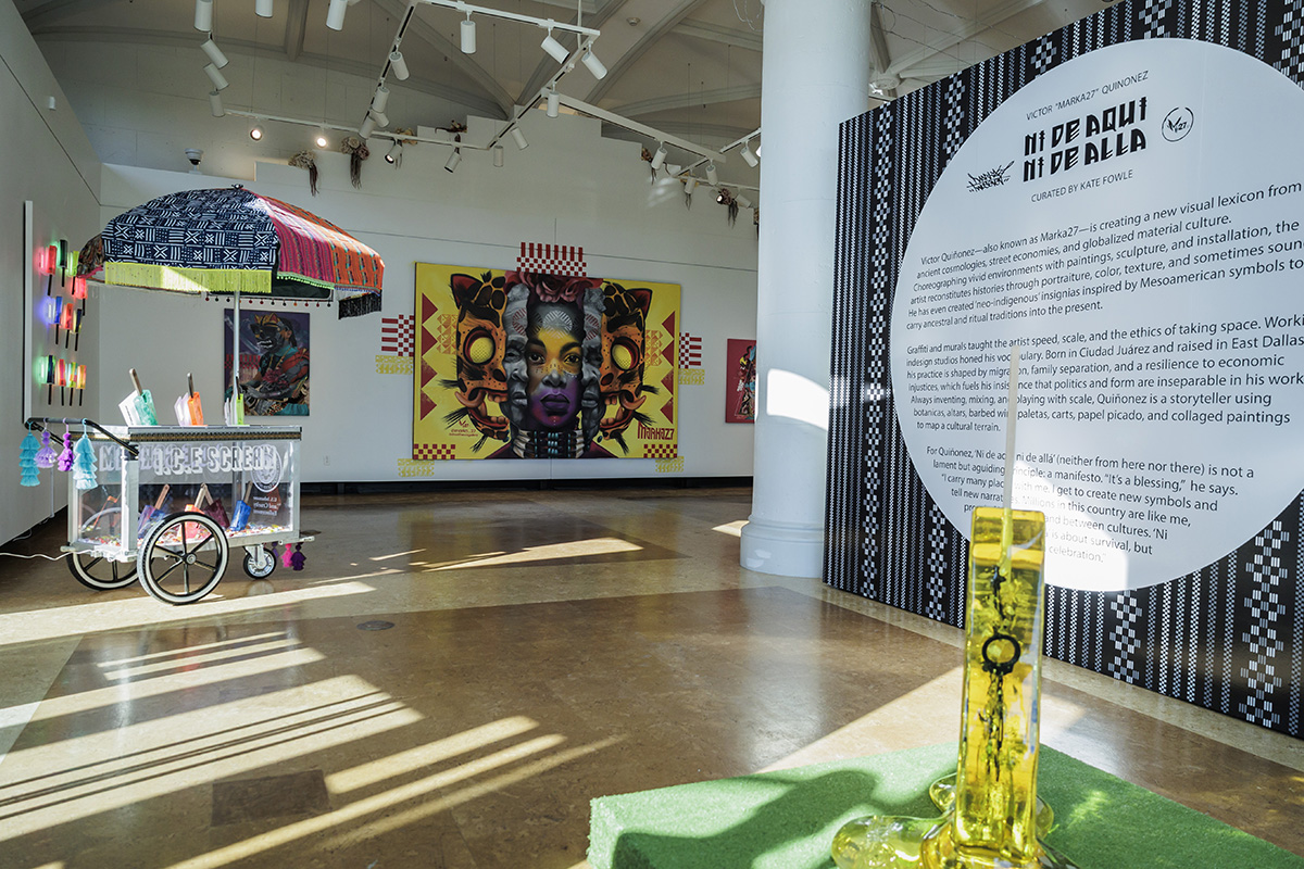 Boston Art Review hails Ni de Aquí, Ni de Allá as “immersive, bright, layered, and fully alive. Victor ‘Marka27’ Quiñonez blends graffiti, hip-hop, Chicanx aesthetics, and pop culture in ways that feel both muralistic and intimate, but also a bit rebellious.”