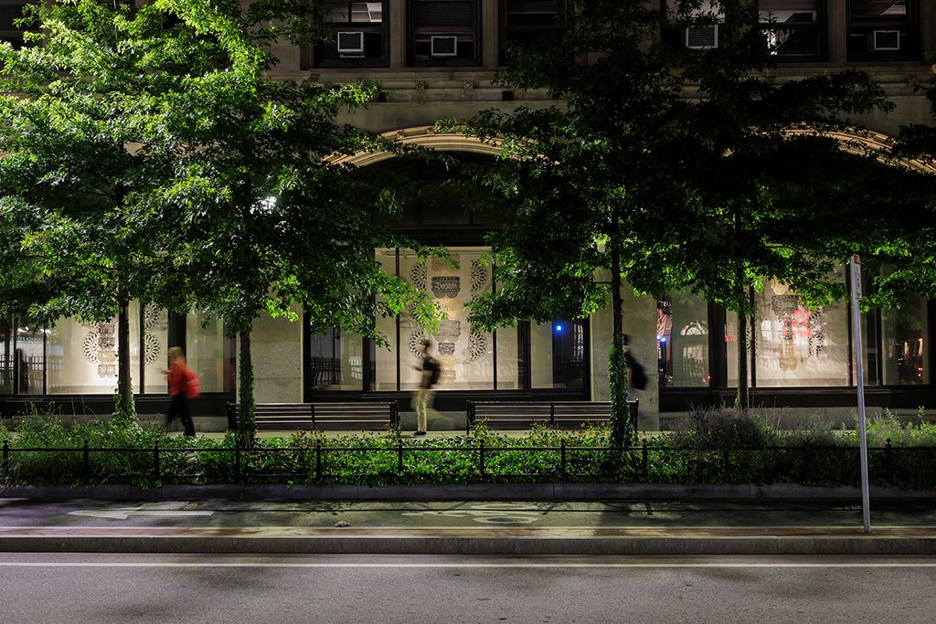 Victor “Marka27” Quiñonez’ “Elevar La Cultura,” (2025) an immersive sculptural installation featuring a twenty-two-foot-tall pyramid built from the objects of everyday hustle—ice coolers reborn as icons and fused with ancestral textiles, sacred symbols, and mural work, is on view at Boston’s Rose Kennedy Greenway through December 2025.